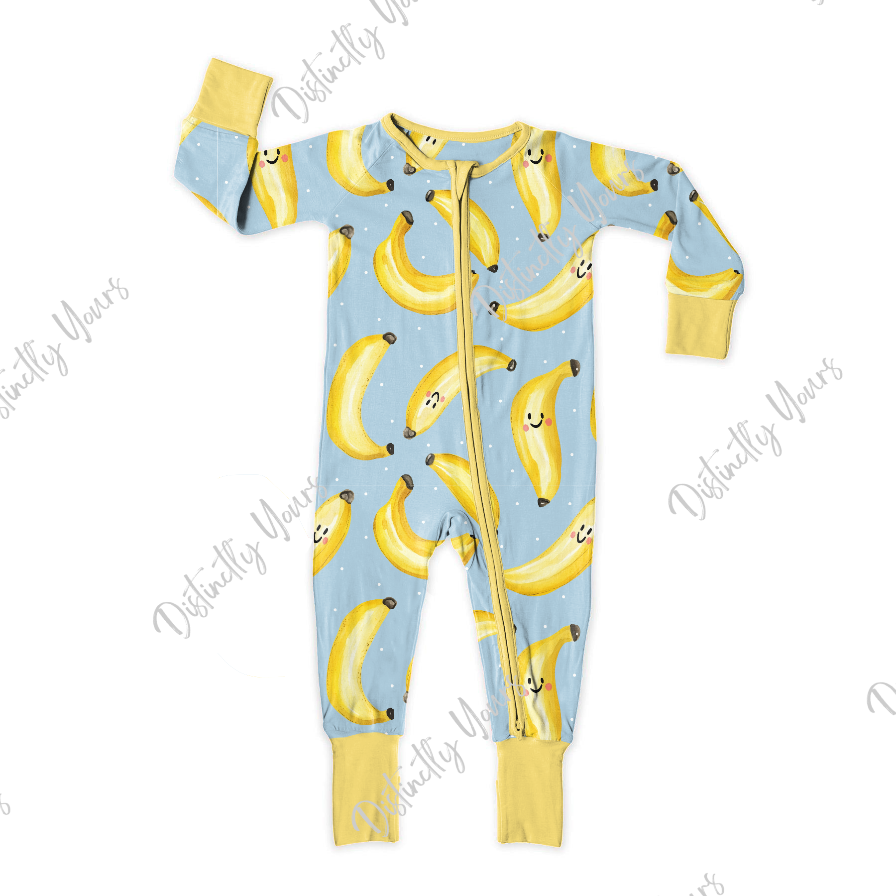 Zippy style features a double zipper, grippy feet and fold over cuffs on both the hands and feet.