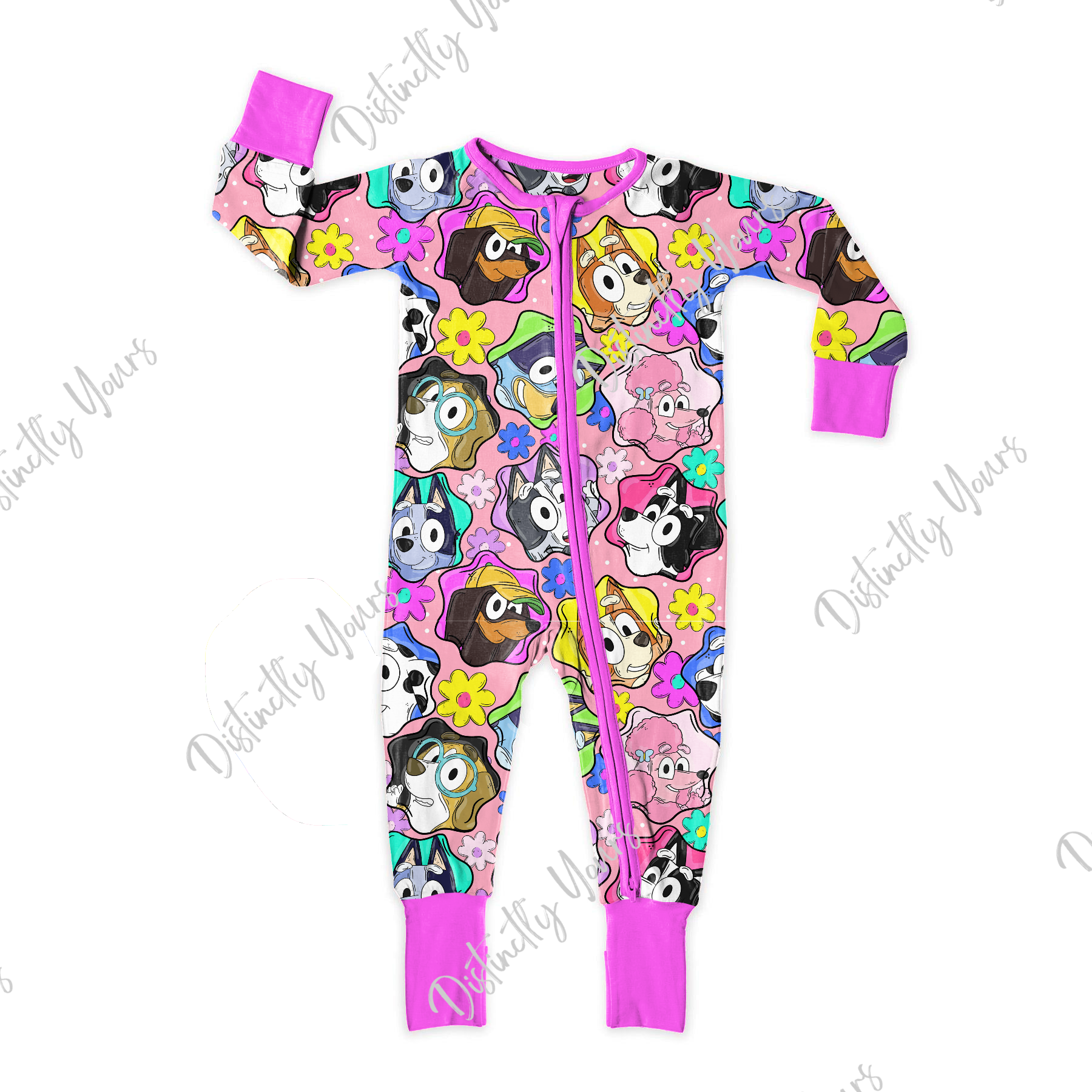 Zippy style features a double zipper, grippy feet and fold over cuffs on both the hands and feet.